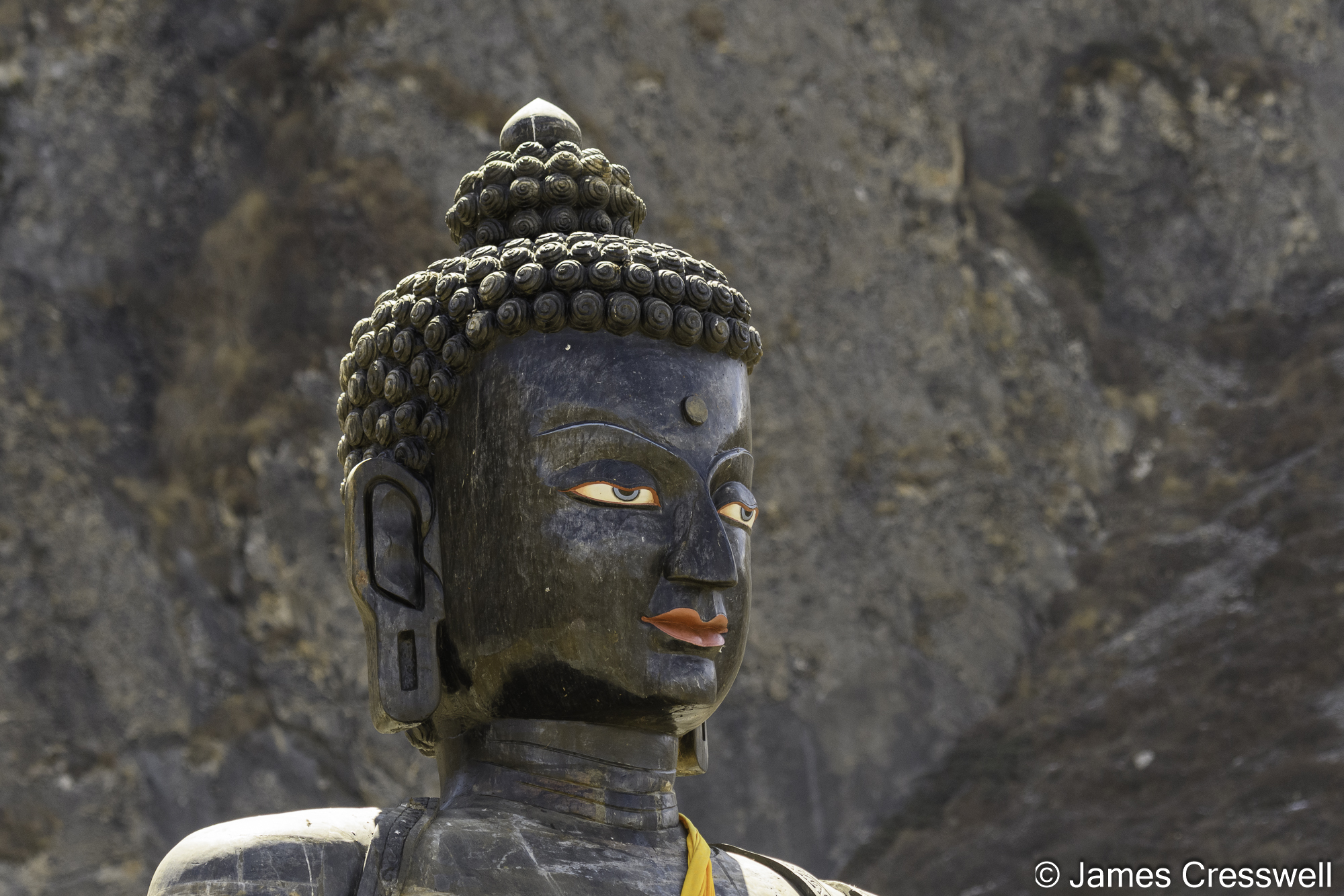 James Cresswell in front of a giant shaligram sculpture (Day 7)