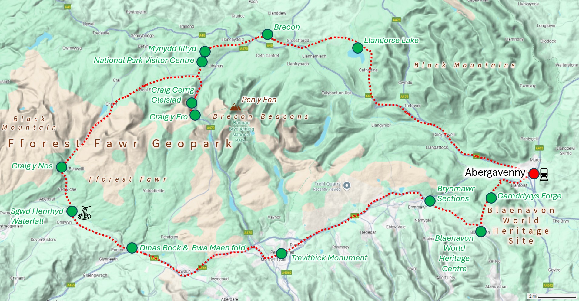 GeoWorld Travel is located both within the Fforest Fawr Geopark and Bannau Brycheiniog National Park, and is les than a mile outside the Blaenavon World Heritage Site boundary